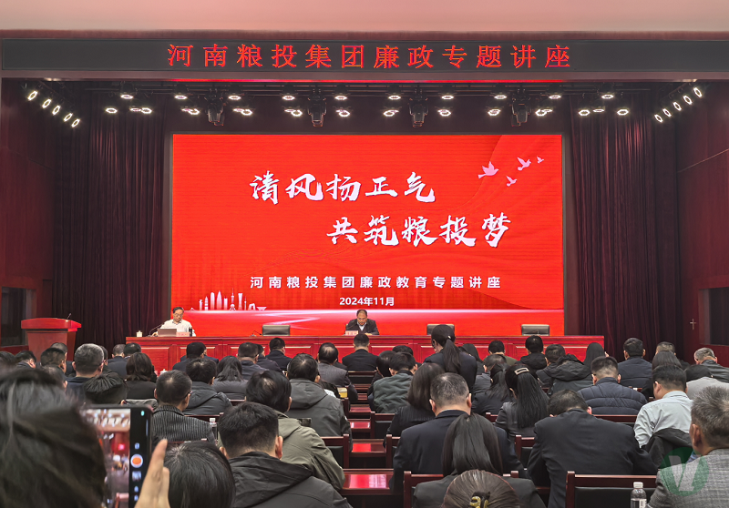 瀏覽次數(shù):5250次11月21日,河南糧投集團(tuán)在農(nóng)投國(guó)際報(bào)告廳舉辦廉政教育專題講座,集團(tuán)黨委書記、董事長(zhǎng)王剛出席活動(dòng),紀(jì)委書記李在良主持會(huì)議,集團(tuán)本部中層以上干部及全體黨員,子公司領(lǐng)導(dǎo)班子成員、黨總支(支部)紀(jì)檢委員等共100余人參加了講座學(xué)習(xí)。